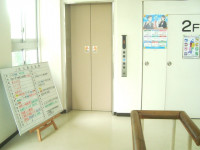 本館西側の階段を上がると、2階フロアのエレベーター前に行事案内板が移設されました。